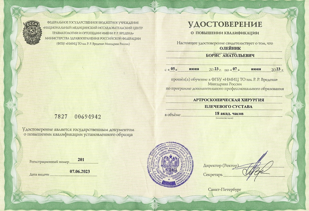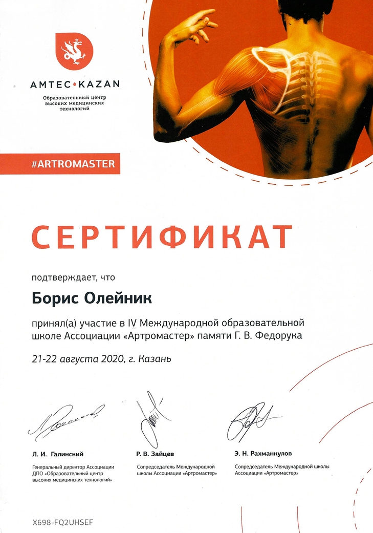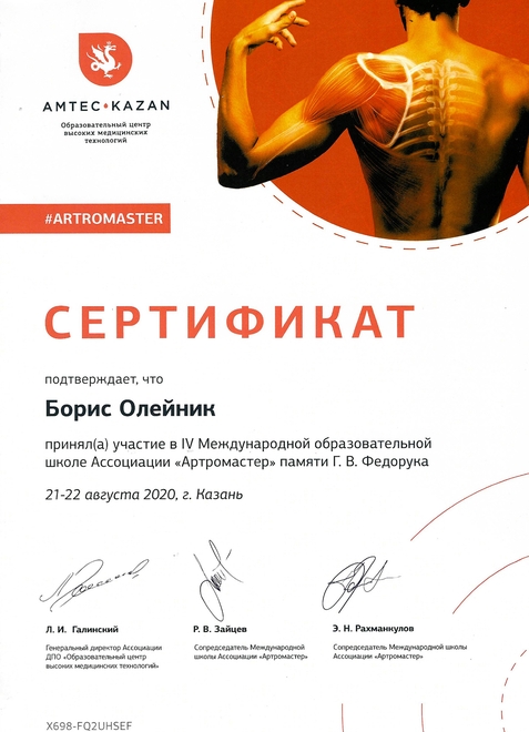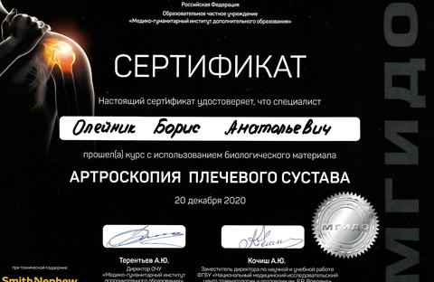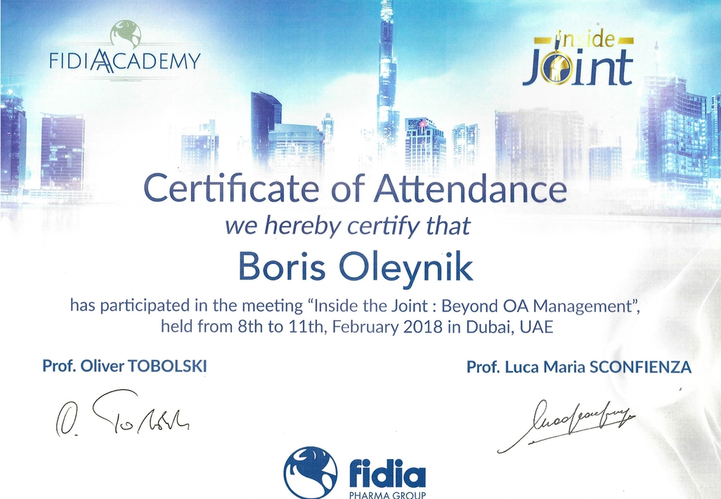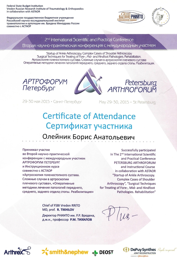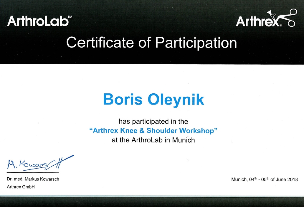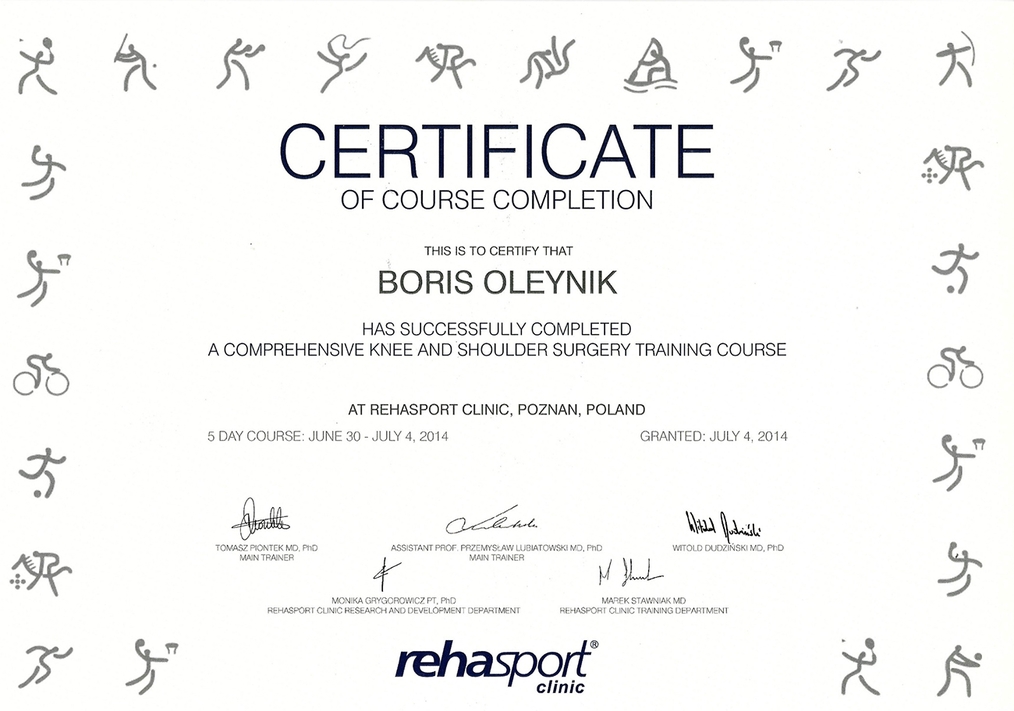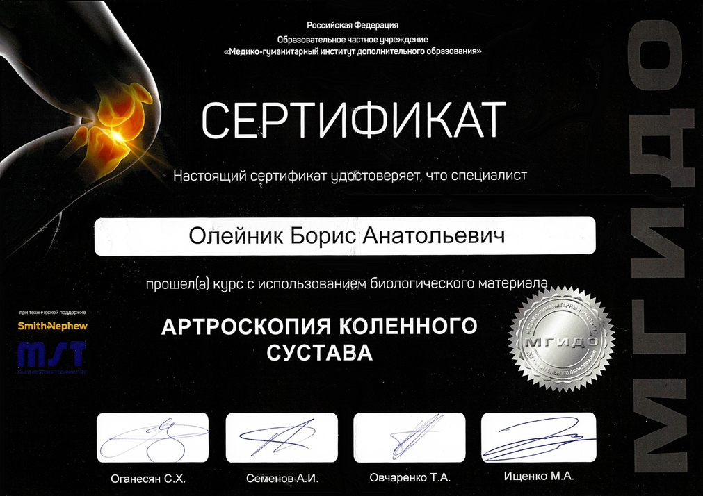 — лектор-инструктор на cadaver-курсах по артроскопии компании Smith & Nephew